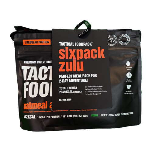 Ta med Sixpack Zulu på dina äventyr och njut av läckra varma måltider. Det är den perfekta kombinationen för veganer och personer som vill ha smak, variation och långvarig energi. Du hittar 6 växtbaserade måltider för 2 dagar, dessa kommer garanterat att kittla dina smaklökar.