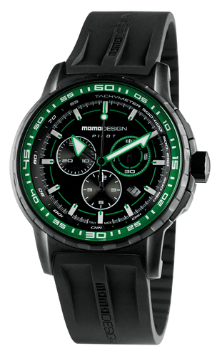 MomoDesign Pilot Pro Chrono Svart/Grön, 46mm, Gummi