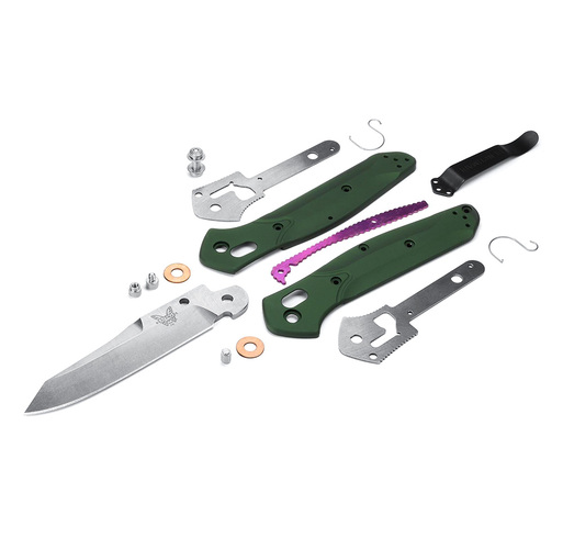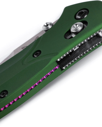 Osborne Designs 940 är en stor kniv i ett litet format och den perfekta kombinationen av elegans och funktion. Orginalutförandet har ett grönt aluminiumgrepp med lilaanodiserade back spacer.