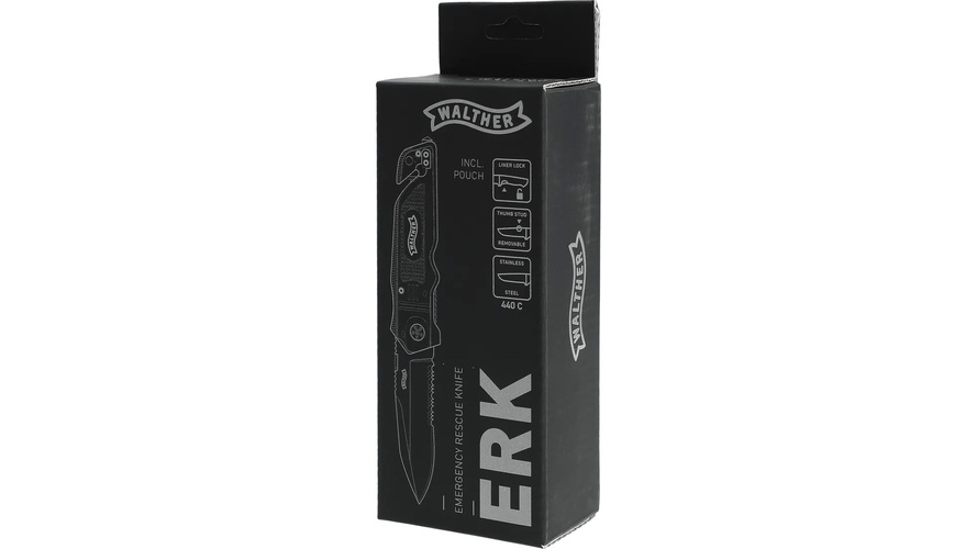 Walthers ERK-kniv är noggrant utformad för att kunna rädda liv i en nödsituation. Den har bra grepp, bra skäregenskaper och är lätt att öppna. Knivens bakstycke är utrustad med flera nyttiga funktioner.