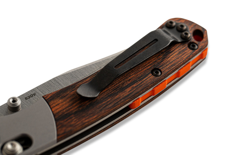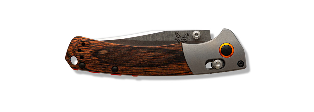 Benchmades fällknivar är utrustade med en genial låsmekanism som av många rankas som nr. 1. Fördelarna i Axis-lock ligger i snabbheten, hållbarheten och säkerheten. Snabbheten kan jämföras med fjäderassisterad modell (som inte får säljas i Sverige), med fördelen att man med bara en hand lika snabbt fäller in bladet. Tryck in knappen, gör en lätt knyck och bladet åker in, eller ut. Låset är helt oberoende vilken hand du håller kniven i.