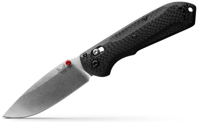 AXIS LOCKBenchmades fällknivar är utrustade med en genial låsmekanism som av många rankas som nr. 1. Fördelarna i Axis-lock ligger i snabbheten, hållbarheten och säkerheten. Snabbheten kan jämföras med fjäderassisterad modell (som inte får säljas i Sverige), med fördelen att man med bara en hand lika snabbt fäller in bladet. Tryck in knappen, gör en lätt knyck och bladet åker in, eller ut. Låset är helt oberoende vilken hand du håller kniven i.