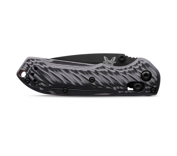 AXIS LOCKBenchmades fällknivar är utrustade med en genial låsmekanism som av många rankas som nr. 1. Fördelarna i Axis-lock ligger i snabbheten, hållbarheten och säkerheten. Snabbheten kan jämföras med fjäderassisterad modell (som inte får säljas i Sverige), med fördelen att man med bara en hand lika snabbt fäller in bladet. Tryck in knappen, gör en lätt knyck och bladet åker in, eller ut. Låset är helt oberoende vilken hand du håller kniven i.