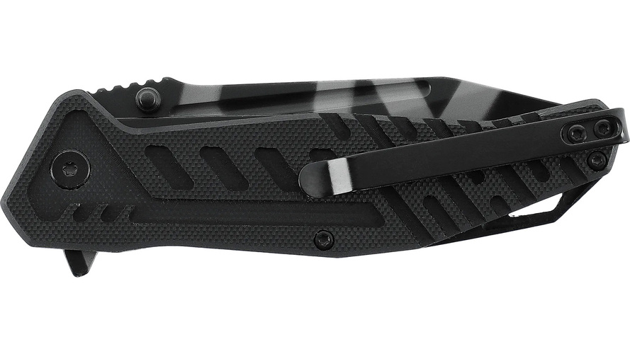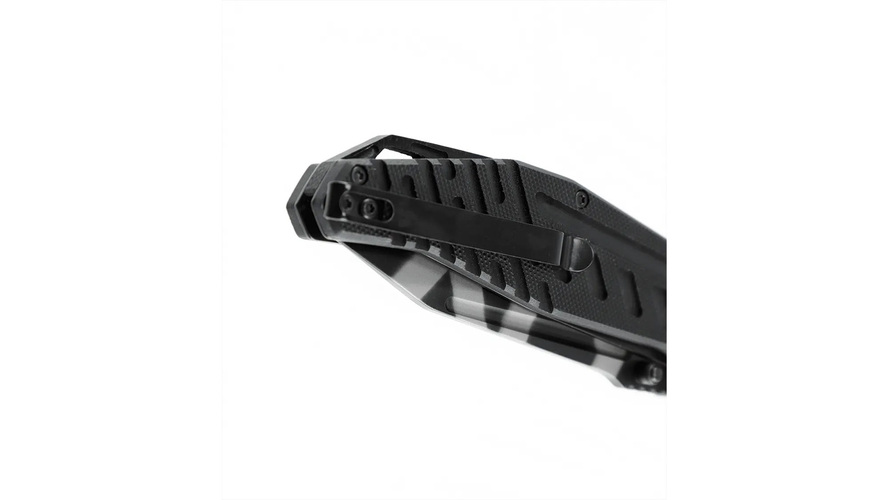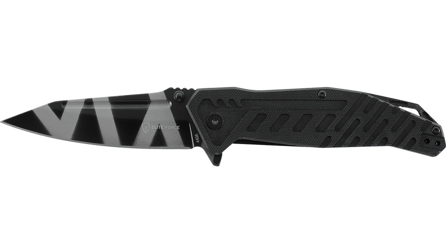 Som en robust taktisk fällkniv erbjuder EF158 en slående design och förstklassig hantering. Det 88 mm långa reverse tanto-bladet har en taktisk tigerstripad finish och öppnas med en tumknapp.