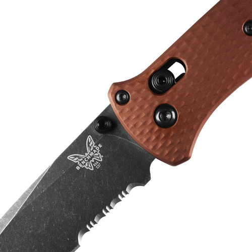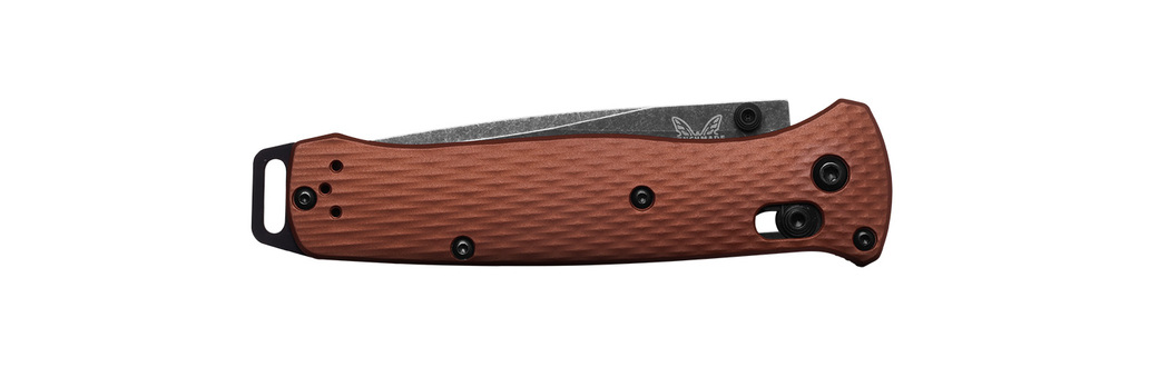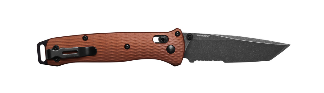 Den nya 537SBK-07 Bailout® introducerar CPM-MagnaCut rostfritt superstål med förbättrad korrosionsbeständighet i en DLC Battlewash-finish. Tillsammans med lätta, diamanttexturerade bränd kopparfärgade anodiserade aluminiumhandtag.