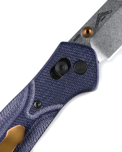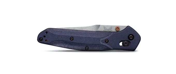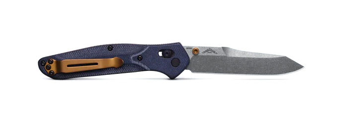 Den nya 940-04 Osborne har ett M390 reverse tanto-blad med satinfinish. Med grepp i blå denimmicarta och mörka kopparfärgade PVD-detaljer.