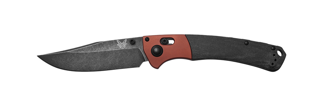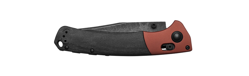 AXIS LOCKBenchmades fällknivar är utrustade med en genial låsmekanism som av många rankas som nr. 1. Fördelarna i Axis-lock ligger i snabbheten, hållbarheten och säkerheten. Snabbheten kan jämföras med fjäderassisterad modell (som inte får säljas i Sverige), med fördelen att man med bara en hand lika snabbt fäller in bladet. Tryck in knappen, gör en lätt knyck och bladet åker in, eller ut. Låset är helt oberoende vilken hand du håller kniven i.