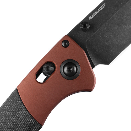 I linje med sina rötter som en hyllning till tradition med ett modernt tillvägagångssätt, ger den stilrena 15080BK-04 Crooked River en mörk, sliten patina till serien. Denna eleganta fällkniv kombinerar svarta Micartagrepp i canvas med ett bränt kopparstöd och har ett kraftfullt CPM-MagnaCut-blad med en DLC Battlewash-finish. Utrustad med svart oxid och svart anodiserat stål.