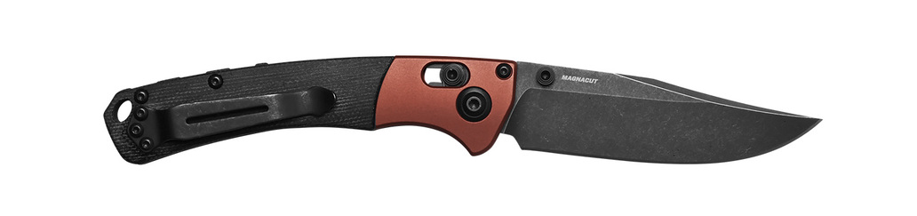 AXIS LOCKBenchmades fällknivar är utrustade med en genial låsmekanism som av många rankas som nr. 1. Fördelarna i Axis-lock ligger i snabbheten, hållbarheten och säkerheten. Snabbheten kan jämföras med fjäderassisterad modell (som inte får säljas i Sverige), med fördelen att man med bara en hand lika snabbt fäller in bladet. Tryck in knappen, gör en lätt knyck och bladet åker in, eller ut. Låset är helt oberoende vilken hand du håller kniven i.