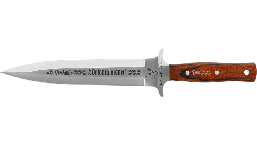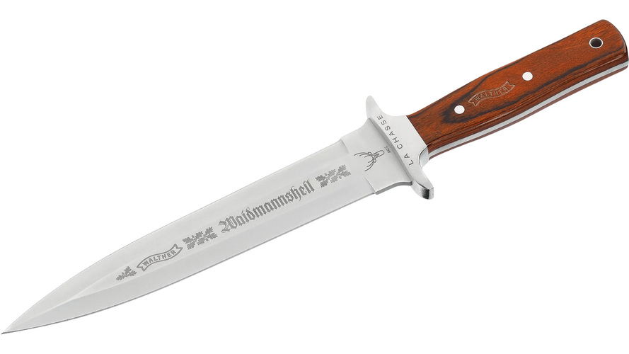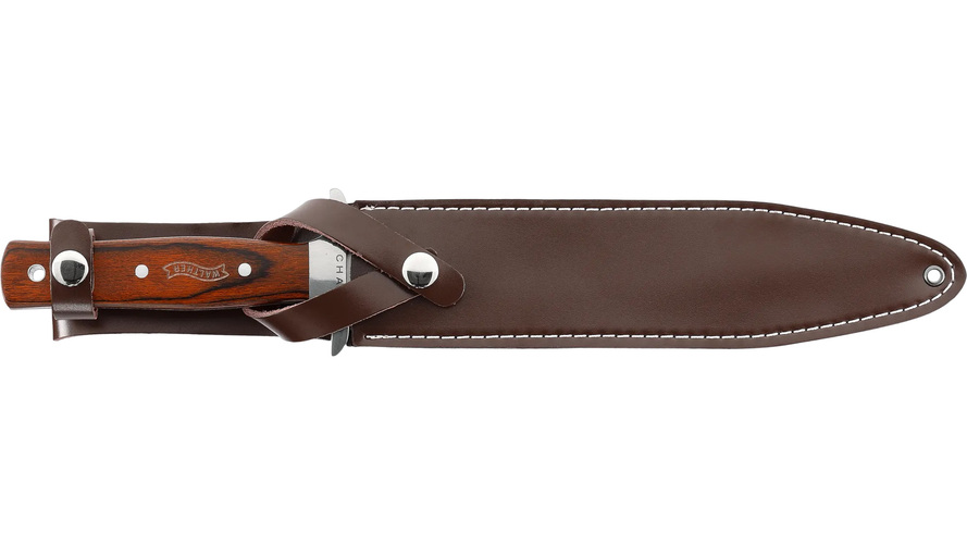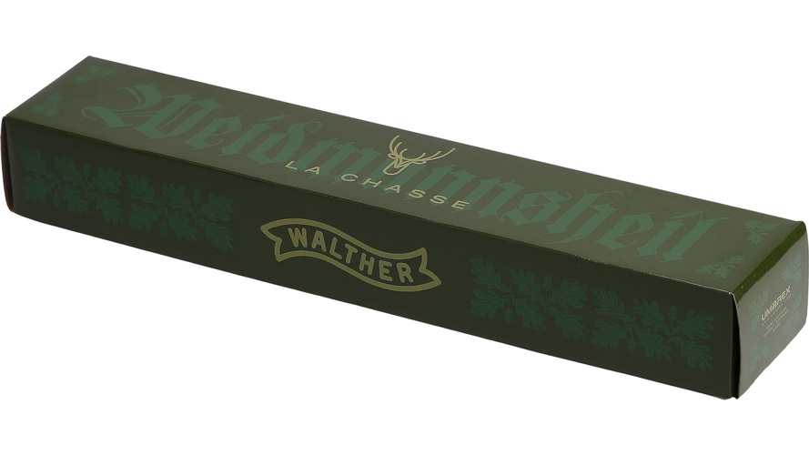 Jägare har höga krav när det gäller vildsvinsknivar som Walther La Chasse. En välplacerad stöt krävs för att få jobbet gjort snabbt. Därför har den här kniven ett blad som är nästan 240 mm långt och 40 mm brett, plus en blodränna. Mellan bladet och handtaget bär stålhandskyddet inskriptionen La Chasse – jakten. Boar Hunter kan enkelt bäras på bältet med det medföljande läderslidan.