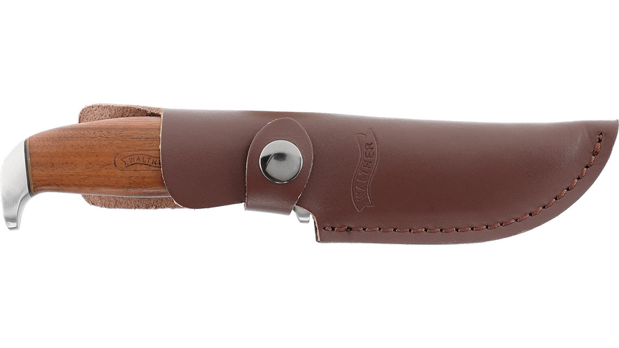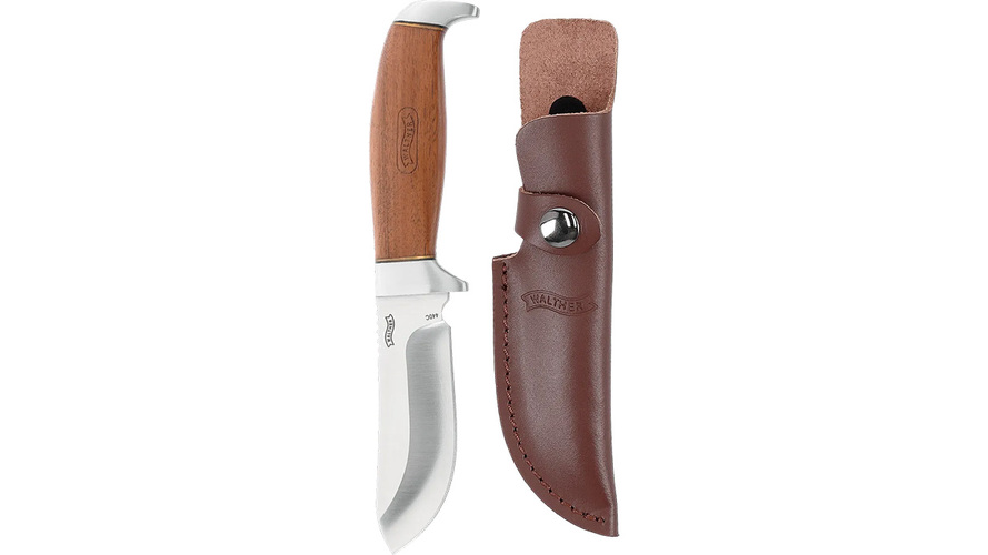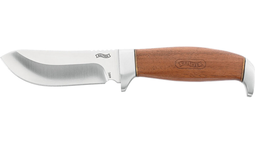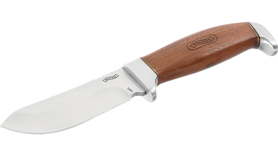Elegant kniv med valnötsgrepp och rejäl handguard.