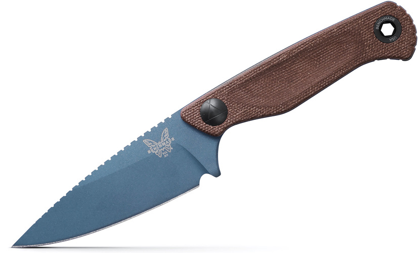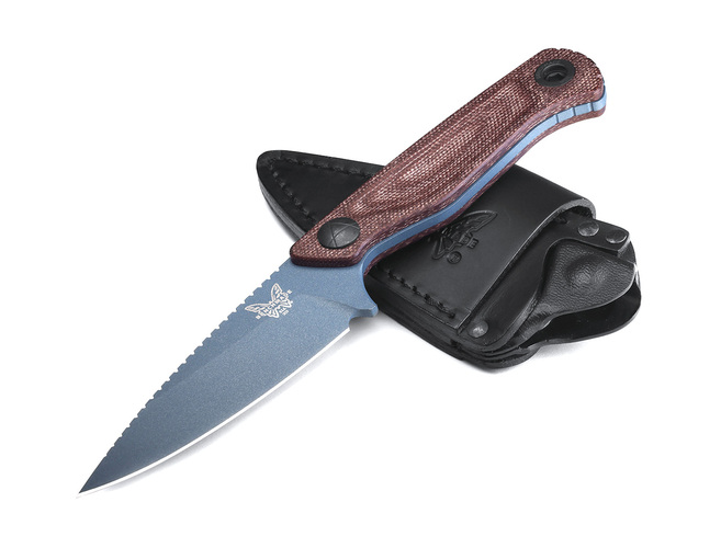 När det finns arbete att göra och dagens krav kräver ett tåligt, allsidigt fast blad, är 203BT-03 Dacian™ ditt förstahandsval, byggd för både vardagsanvändning och friluftsliv. Med supertåligt och korrosionsbeständigt MagnaCut-stål i en spjutspetsprofil med en blå Titanium Cerakote®-finish, har 203BT-03:s slitstarka bruna micarta-handtag laterala spår längs med skollorna för extrem komfort i flera greppositioner. Slidan kombinerar lädrets klassiska utseende med Boltaron®-insatsen som ger ett starkt fäste. Dacian™ monteras bekvämt på bältet för enkel åtkomst.