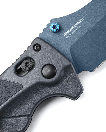 AXIS LOCKBenchmades fällknivar är utrustade med en genial låsmekanism som av många rankas som nr. 1. Fördelarna i Axis-lock ligger i snabbheten, hållbarheten och säkerheten. Snabbheten kan jämföras med fjäderassisterad modell (som inte får säljas i Sverige), med fördelen att man med bara en hand lika snabbt fäller in bladet. Tryck in knappen, gör en lätt knyck och bladet åker in, eller ut. Låset är helt oberoende vilken hand du håller kniven i.